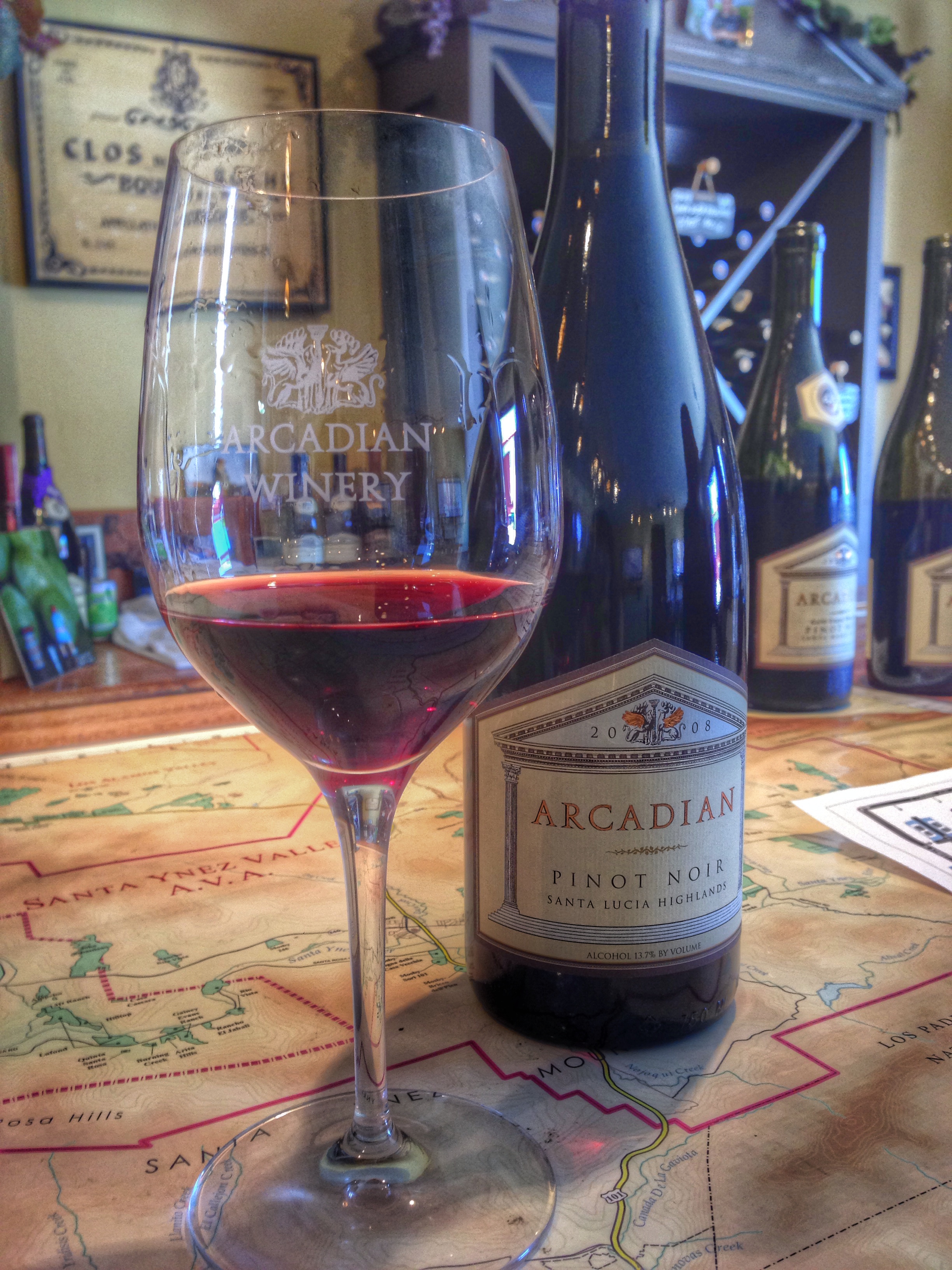 As we decided on our next winery – I put my foot down and said I wanted to go to Arcadian. I had read some reviews and heard their wines were really good. It didn’t hurt that there was two wine barrel recliners in the front that Emily and Karen immediately ran to since they were tired from standing at the first two rooms. The Arcadian Winery tasting room also features the Bratcher wines. The room was larger with a L-shaped bar for tasting and the two ladies in the tasting room were more than friendly! There were six wines on the tasting menu – 3 from each winery. It was clear immediately that the wines has been held until they were ready to be consumed – the youngest wine was a 2009. While standing at the bar chatting with my friends and the hosts – I noticed that they had various wines from the Santa Lucia Highlands and even more specifically from the “Gary’s Vineyard.” This particular block and region is one of my favorites – as I normally do I asked nicely if anything else was open from that region. They had one open – it was very enjoyable, I won’t lie! They may or may not have opened a few other for us to enjoy. All the wines were great, it was being to become clear that I may have found my new winery to belong to. (Note- I also belong at Copain Wines in Healdsburg) The tasting room also had a large table – we were socializing and enjoying all the additional pour but really needed to eat. We knew there was a place that sold fresh bread – when we asked one of the ladies about it – she offered to go and got one with her discount. We ate our cheese, hummus and additional snacks with the fresh-baked bread. We can’t forget the cold filtered water! Karen and I were both into the Syrah (cherry cola and blackberry on the tongue with rich floral and spicy nose)- at a $30 price point before my new membership discount you can’t go wrong!