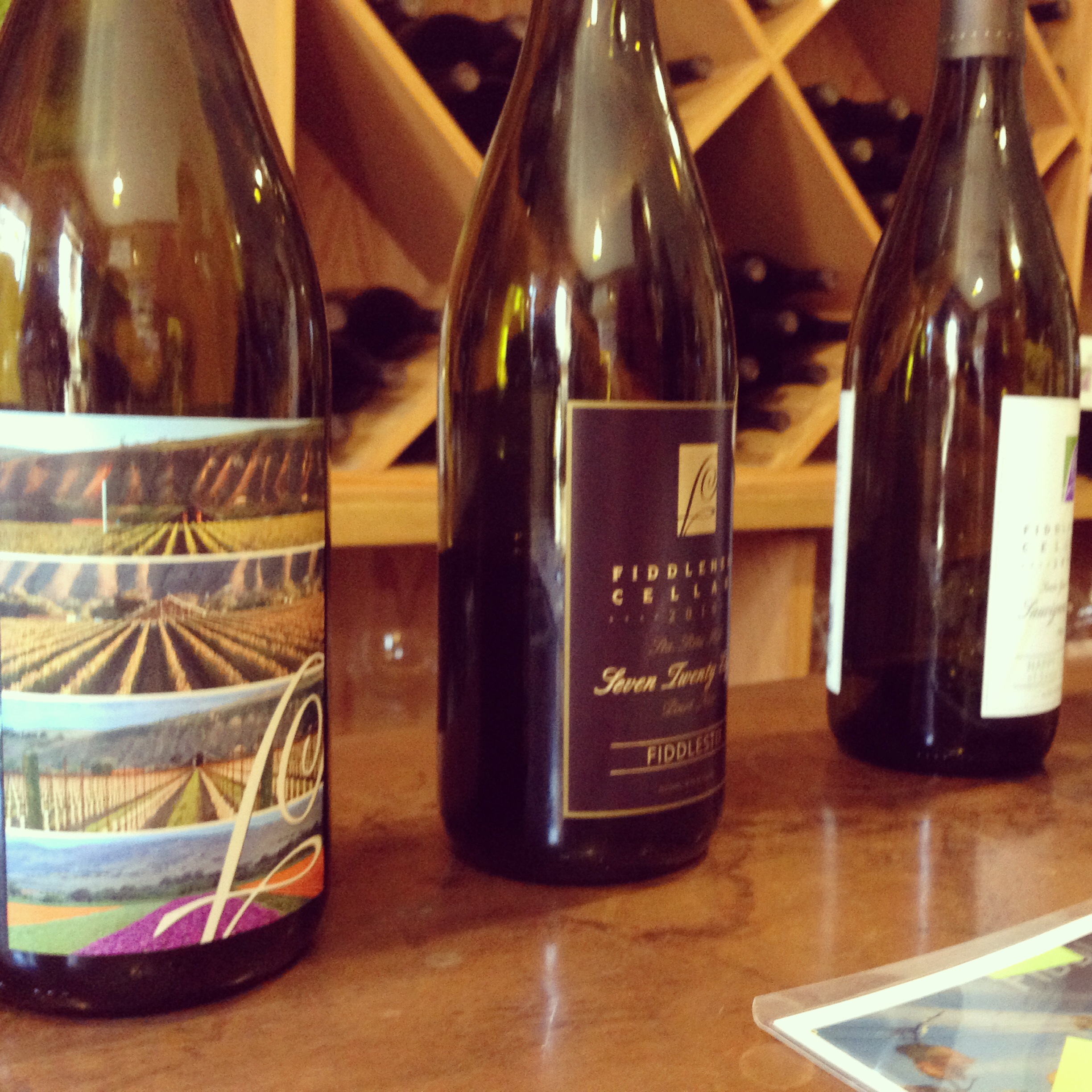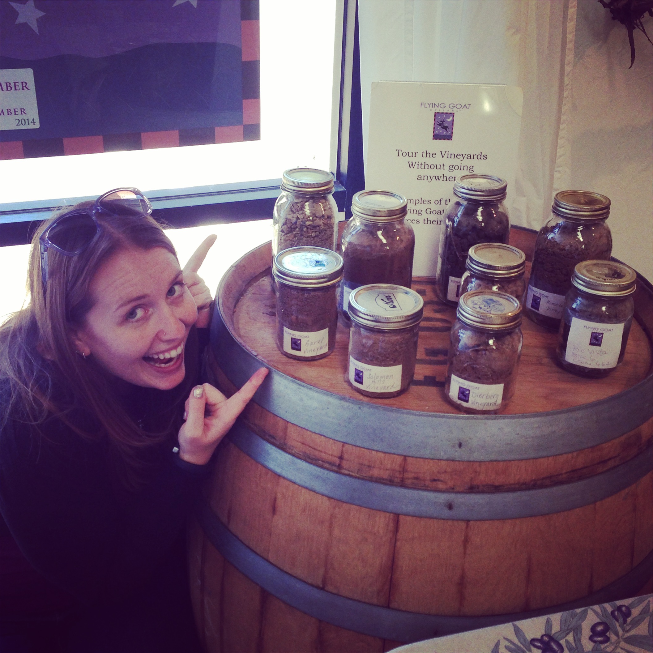 By the time we were finished at Fiddlehead we walked over (about a minute in the parking lot) to Flying Goat. In all the research everyone RAVED about Flying Goat. They offered two separate tasting menus- one sparkling and one still. We split both. Overall we were not impressed, it could have been the wine or the way the owner was talking down to the new hire in the tasting room. Emily in the photo with the soil samples was the happiest the three of us were at any point in the tasting room. My opinion – pass and never look back.