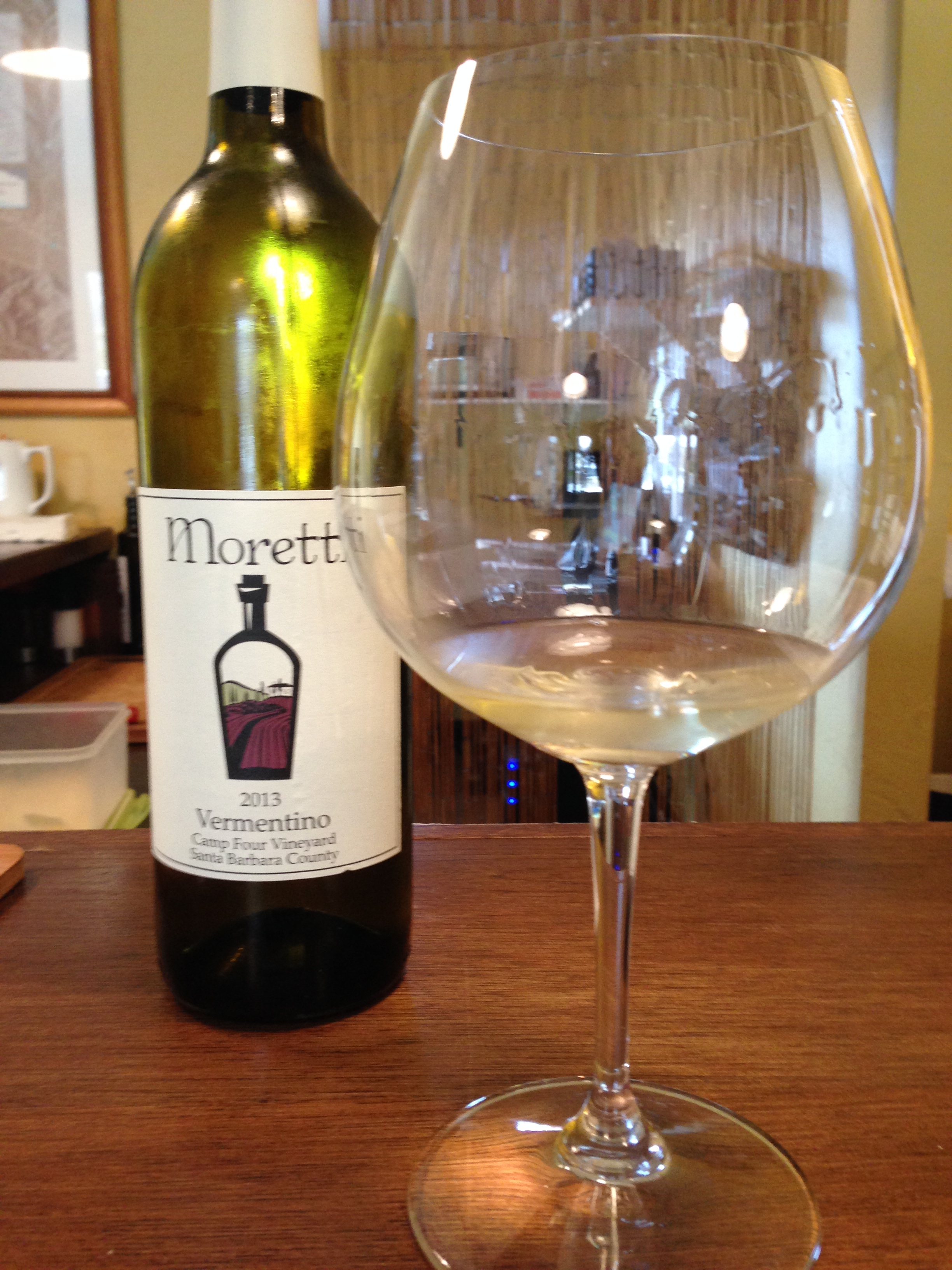 As we leave Tyler – we decided we had to walk through the main ghetto to get back to our hotel. It was a few minutes after 5pm and most places were already closed. We noticed that the open light was still on at Taste of Santa Rita Hills and figured we may as well go in! Antonio Moretti was more than willing to help our party of three. For the first time in the day we each got our own – it was time to sample a few from different places. We learned that the tasting room was opened before he had enough of his own wine to have a full-fledged tasting room (located several doors down) for Moretti Wines. The tasting list included 1 white and 4 different pinots. He instructed us on a few to pair with a cheese or cracker that he provided. I asked about the rose or anything special and we did get a few more pours. It worked out well for him – all of us purchased at least one bottle!