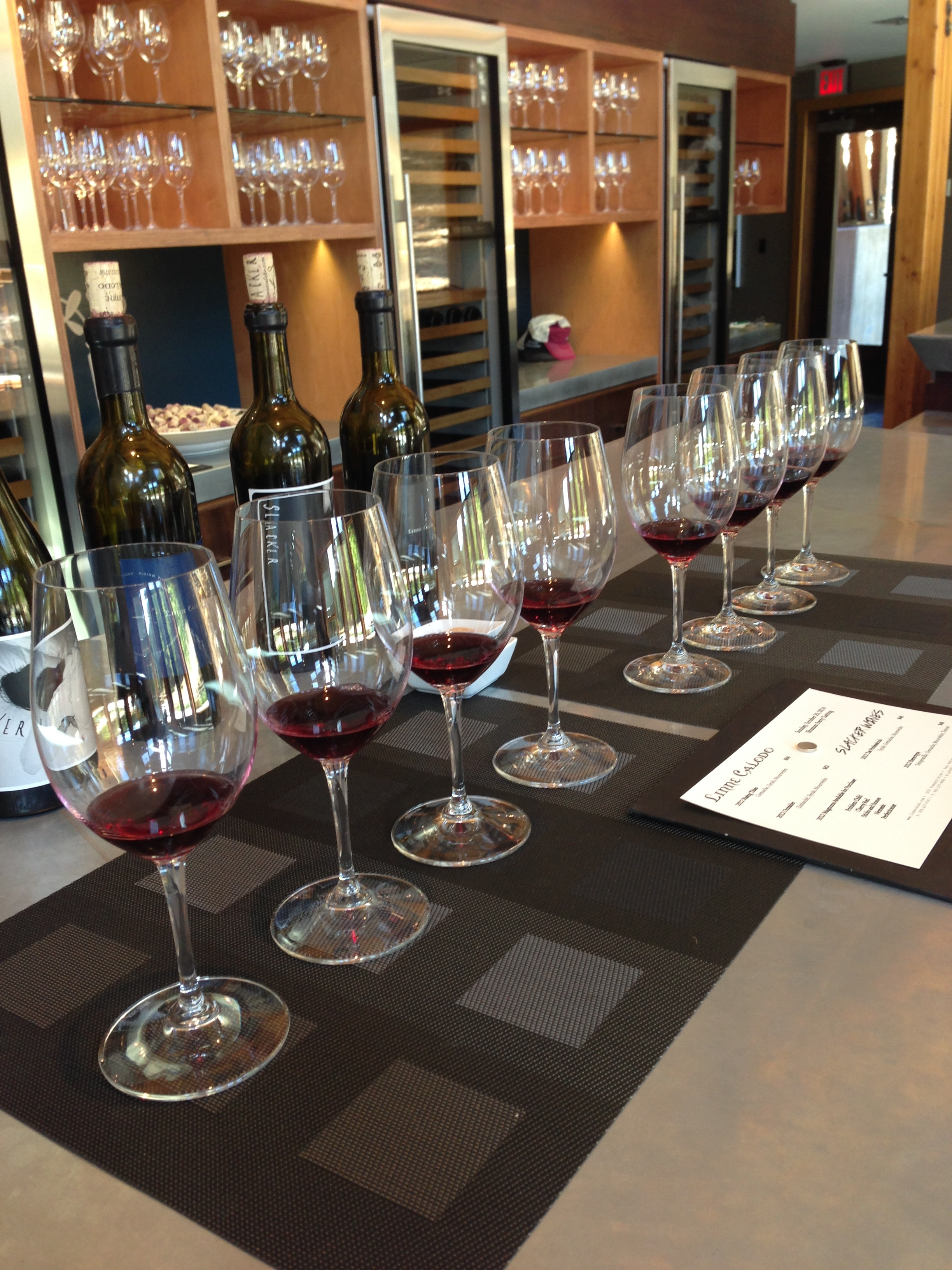 Loved the bar in the tasting room and all the glasses lined up with the samples poured for the comparison tasting and opening! http://www.linnecalodo.com/
